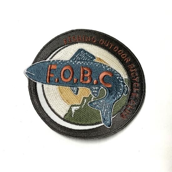 幅広くアウトドアを楽しむ架空のサークル「Fishing Outdoor Bicycle CLUB」の頭文字「F.O.B.C」が刺繍されたワッペン。