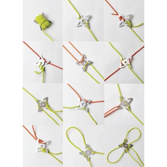 シュリケン型で独自のフック形状を持つ結束、調整、分岐の三つの機能を組み合わせれば、ロープワークを知らずとも様々な使い方が可能なニンジャシュリケン。
