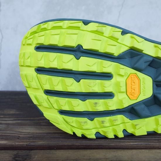 ソールには乾いた路面だけではなく濡れた路面でもしっかりとしたグリップ力を発揮する「Vibram Megagrip」アウトソールを採用。