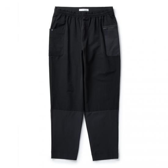 通常のストレッチ素材と比較して、縦方向への伸び率を高めたバーチカルストレッチクロスを採用。腰から腿周りのルーズなイージーパンツシルエットと相まって抜群の動きやすさです。