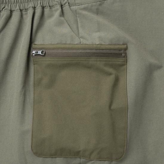 膝下から足首までのテーパード部分は撥水性の高い4WAYストレッチを採用し、朝露に濡れたキャンプ場の草むらを歩く時や、アスファルトの水溜りや雨の跳ね返しなどからの水濡れを軽減します。