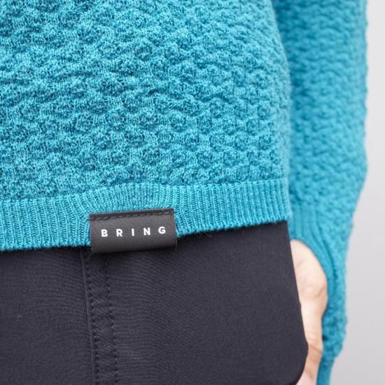 BRING Material™の再生ポリエステルが持つ速乾性でウール100%と比較して早く乾くので、行動中は常に肌をドライに保ちながら、洗濯時も早く乾きます。