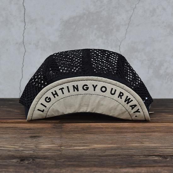 ツバ裏には“LIGHTING YOUR WAY”の刺繍をあしらい、暗闇を照らし前へ進むハイカーたちへのメッセージを刻印。